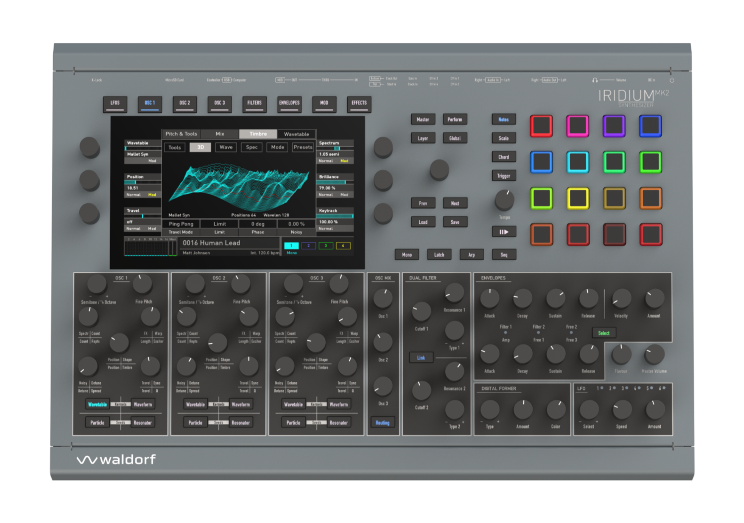 Based on the legendary multi-engine design of the Quantum & Iridium product line, the MK2 innovates even further, thus fitting perfectly into Waldorf’s forward-looking synthesizer design philosophy.