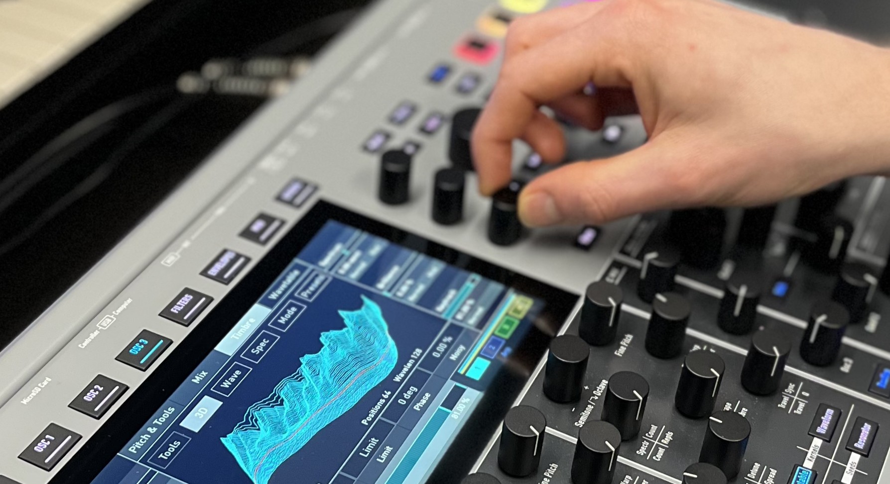 The added RAM further allows a new sixth synthesis method for each of the three oscillators. Inspired by wavetable synthesis, in which each wavetable represents a timbral journey, Waldorf has found a way to base these timbral journeys not only on static waveforms, but also to dynamically synthesize each waypoint from sub-oscillators we called “Seeds”. These can be controlled and recombined using techniques like ring modulation and frequency modulation, and enriched with noise and other non-pitched material. While we provide, similarly to wavetables, a set of predefined timbral journeys, you can also edit and create your own.